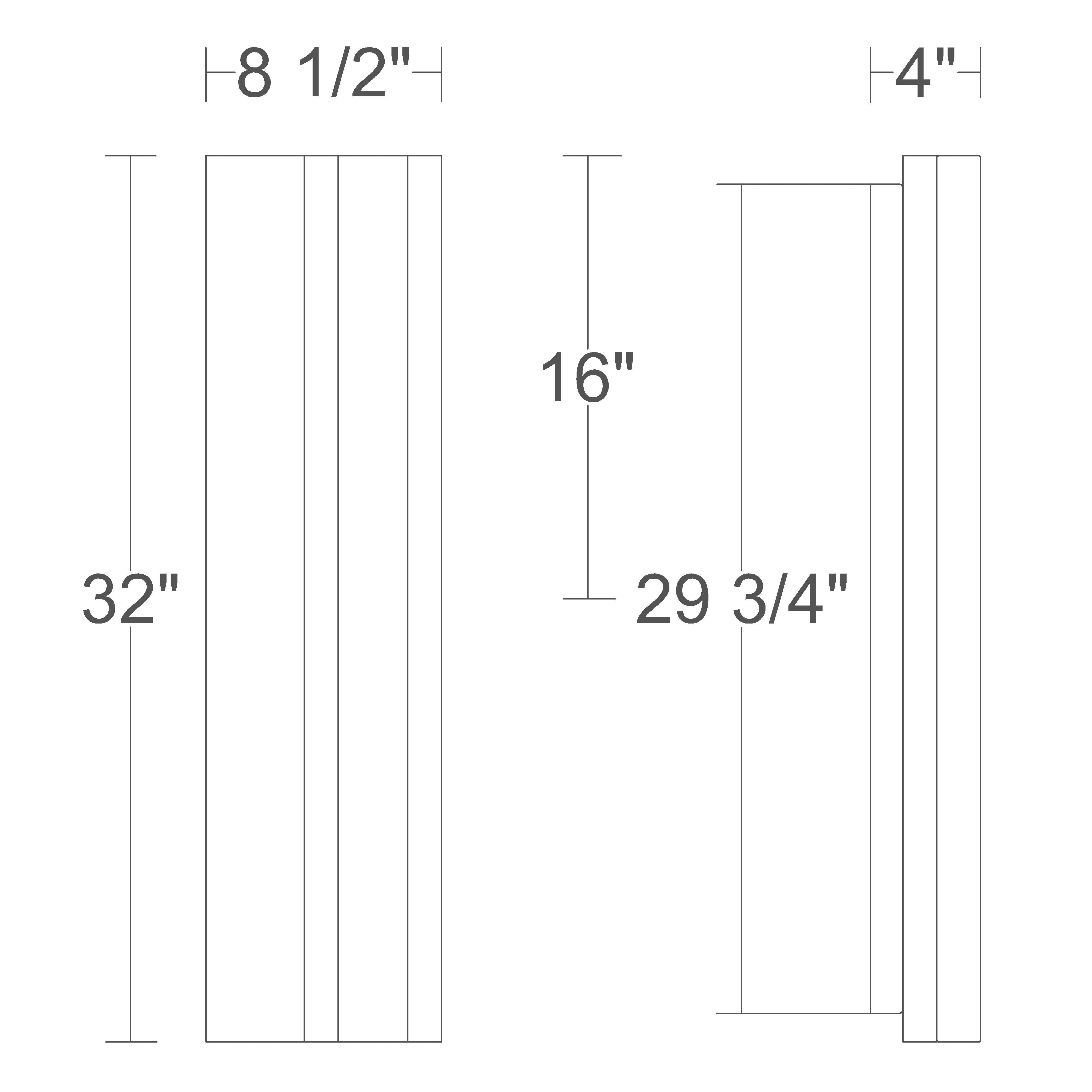 Dimensions: W:8-1/2" x H: 32" x E: 4"